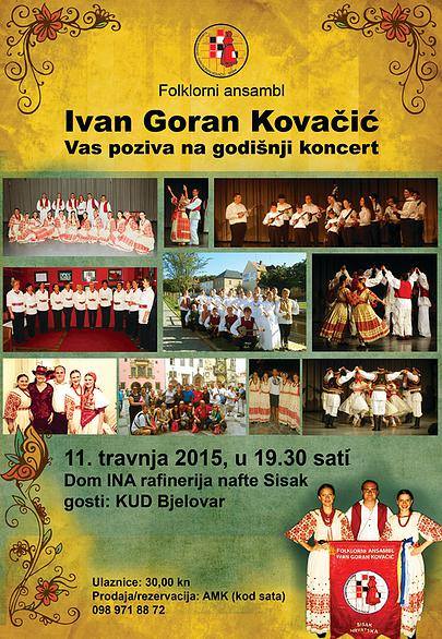 FA „Ivan Goran Kovačić“ – Sisak održat će u subotu, 11. travnja 2015. godine s početkom u 19.30 sati u Domu INA Rafinerije nafte Sisak tradicionalni godišnji koncert, a gost je KUD Bjelovar.
