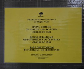 Udruga Projekt građanskih prava grada Siska organizirala je danas otvorenje novog prostora koji su na korištenje dobili od Grada Siska na adresi S. i A. Radića 5. Predsjednica Udruge Milana Kreća, kazala je kako je udruga registrirana u Sisku 2003. godine, a bave se pružanjem besplatne pravne pomoći te promicanjem i zaštitom ljudskih prava, prava nacionalnih manjina i ostalih socijalno isključenih skupina te su dosada pomogli više od 18 tisuća građana i u više od 50 tisuća slučajeva.
