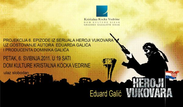 Naime, Dominik Galić, nakon suradnje s ocem, poznatim redateljem Eduardom Galićem, na dokumentarnom filmu “Vukovarska pasija i križni put” sredinom 2005. godine, vukovarsku bitku odabire kao glavnu temu svoje producentske karijere. U tom se vremenu upoznaje s hrvatskim herojem Markom Babićem, a kao plod te suradnje dolazi do projekta “Heroji Vukovara”, dokumentarne serije u tri dijela od po deset nastavaka koja kroz najistaknutije borce s prve crte opisuje upravo vukovarsku bitku. Siščani će imati priliku vidjeti projekciju šeste epizode. Početak je najavljen za 19 sati uz slobodan ulaz.