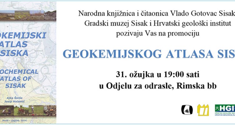 Promocija Geokemijskog atlasa Siska 25 ožu 2015 15:03 Narodna knjižnica i čitaonica Vlado Gotovac Sisak, Gradski muzej Sisak i Hrvatski geološki institut organiziraju promociju Geokemijskog atlasa Siska autora Ajke Šorša i Josipa Halamića koja će se održati u utorak, 31.ožujka s početkom u 19 sati u Odjelu za …