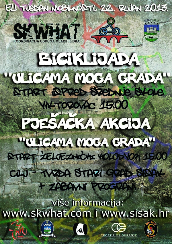 Biciklijada ”Ulicama moga grada” održati će se 22.09.2013, sa startom u 15:00 sati sa igrališta Srednje Škole Viktorovac. Okupljanje biciklista trajati će od 14:30 kako bi svi došli spremni i na vrijeme za ovo fantastično druženje. Biciklijadu će voditi organizatori ove akcije u suradnji s predstavnicima ”Ride it Sisak” udruženja biciklista. Osigurati će se redari volonteri koji će nositi reflektirajuće prsluke te će na taj način biti uočljiviji svim sudionicima. Vozit će se prometnicama grada uz redovno odvijanje prometa. Djelatnici prometne policije Sisak osigurati će nesmetanu prolaznost kolone biciklista na svim raskrižjima prometnica. Cilj biciklijade je tvrđa Stari Grad Sisak.