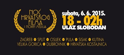 Pozivamo Vas na “Noć hrvatskog filma i novih medija”, manifestaciju što se po drugi put odvija u Hrvatskoj i to na 15-tak različitih lokacija diljem zemlje. U subotu, 6.6.2015., u 9 gradova, Zagrebu, Splitu, Sisku, Puli, Hrvatskoj Kostajnici, Velikoj Gorici, Osijeku, Kutini, Dubrovniku u jednoj će se večeri i noći od 18 do 2 sata prikazati više od 150 filmova. U suradnji s Hrvatskom Kinotekom na velikom će se platnu prikazati digitalno restaurirani hrvatski filmski klasici, dokumentarni, animirani i igrani filmovi.