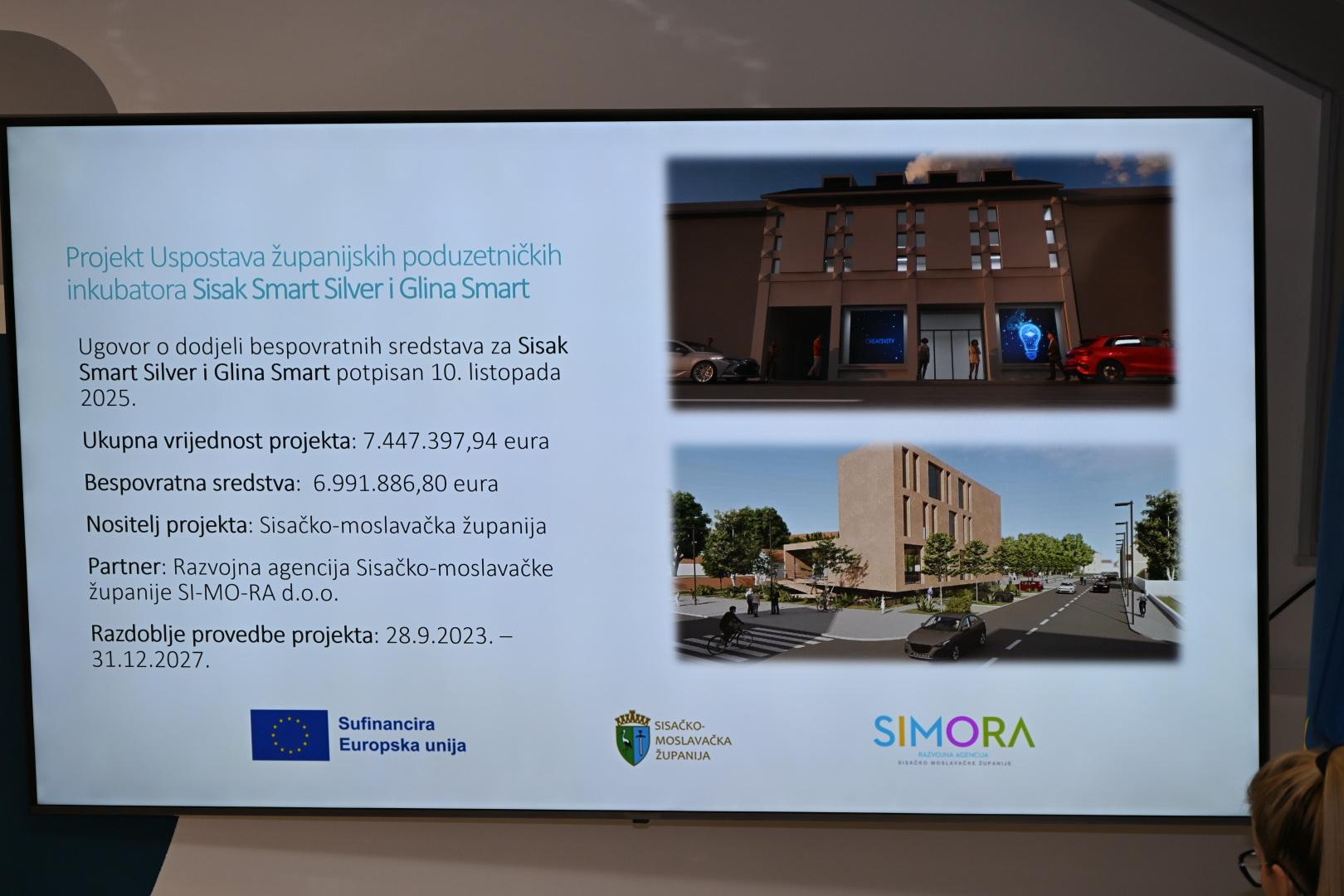 Danas je u Sisku održana početna konferencija i predstavljanje županijskog poduzetničkog inkubatora Sisak Smart Silver, u sklopu projekta „Uspostava županijskih poduzetničkih inkubatora Sisak Smart Silver i Glina Smart“. Projekt je na konferenciji predstavio župan Sisačko-moslavačke županije Ivan Celjak, istaknuvši njegov značaj za razvoj gospodarstva i poduzetničke infrastrukture u županiji. Konferenciji je nazočio i gradonačelnik Domagoj Orlić, koji je naglasio važnost ovakvih projekata za razvoj poduzetništva, otvaranje novih radnih mjesta i jačanje lokalnog gospodarstva. Projekt je dio šire mreže poduzetničkih inkubatora Sisačko-moslavačke županije, koja uključuje ukupno četiri centra, tri u Sisku (Sisak Smart Gold, Sisak Smart Silver i Sisak Smart Green) te jedan u Glini. Ukupna procijenjena vrijednost svih centara iznosi 30,3 milijuna eura, od čega se čak 25,6 milijuna eura odnosi na Sisak. Radovi na inkubatoru Sisak Smart Silver, smještenom u bivšoj zgradi Varteksa, već su započeli 10. veljače 2026. godine. Projekt uključuje uređenje i opremanje prostora veličine 1.001,18 m², a njegova ukupna vrijednost iznosi 2,8 milijuna eura. Inkubator će biti usmjeren na razvoj informacijsko-komunikacijskih tehnologija i kreativnih industrija, uz snažnu povezanost sa STEM područjima. Posebnost ovog centra bit će suvremeni prezentacijsko-edukativni prostor opremljen naprednom multimedijskom tehnologijom, uključujući virtualnu i proširenu stvarnost. Nositelj projekta je Sisačko-moslavačka županija, dok će upravljanje inkubatorom preuzeti Razvojna agencija SI-MO-RA. Ovaj projekt predstavlja važan korak prema stvaranju modernog i inovativnog poduzetničkog okruženja u našem gradu.