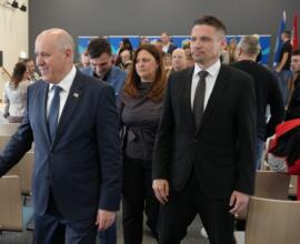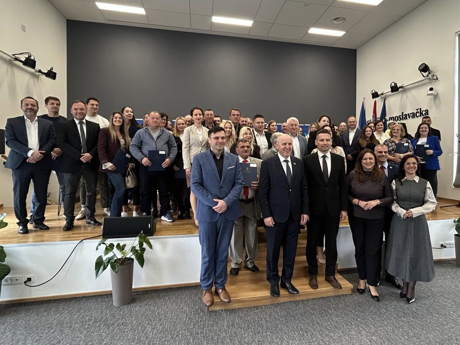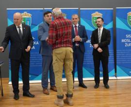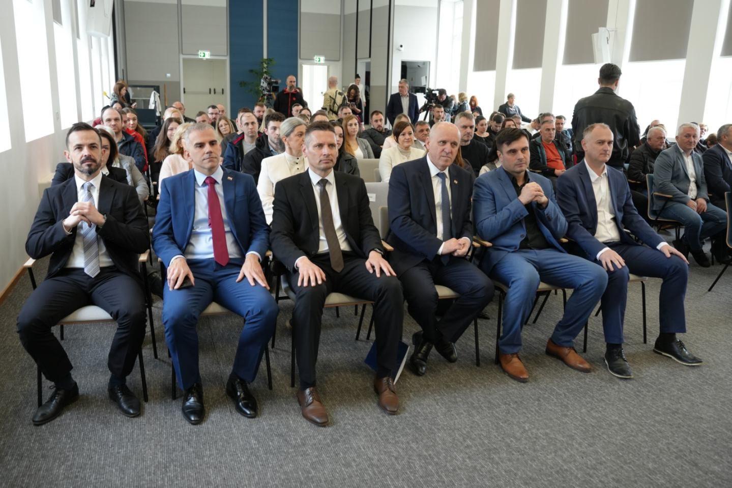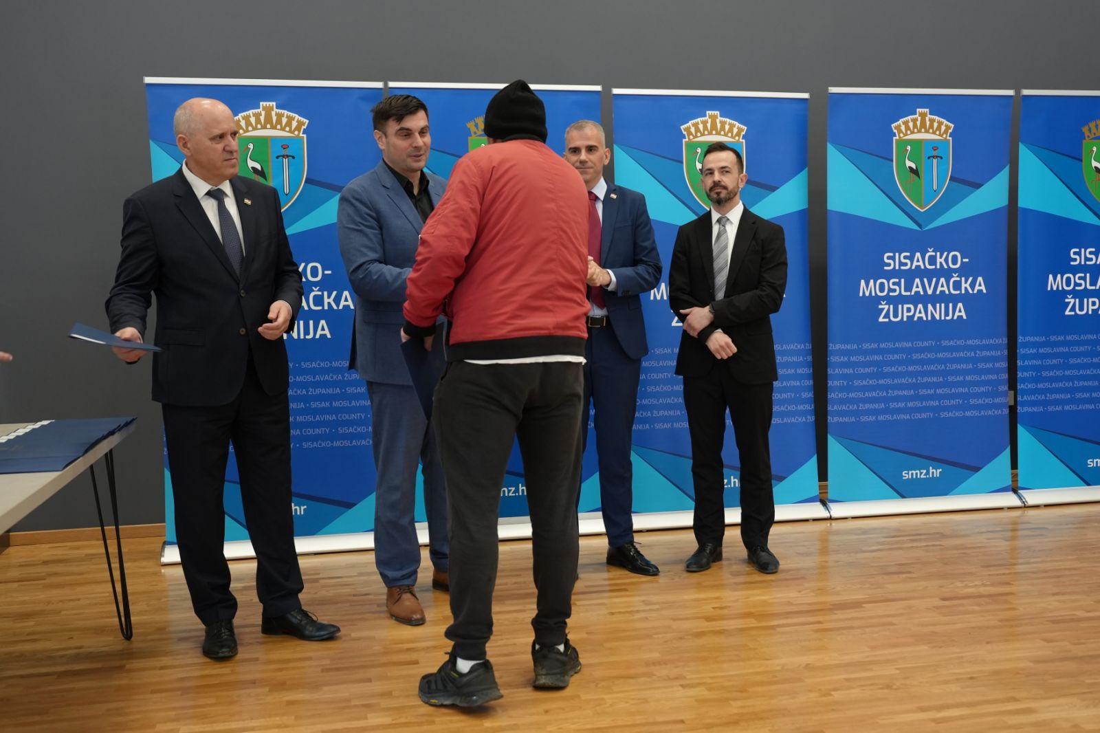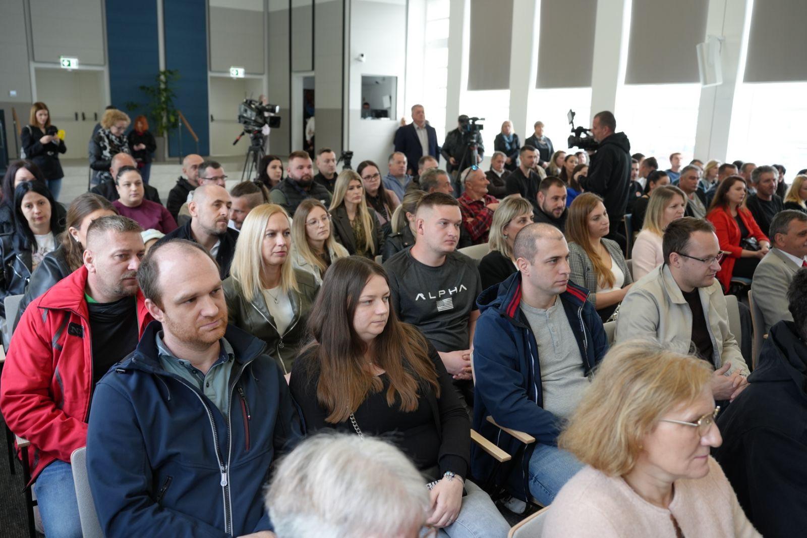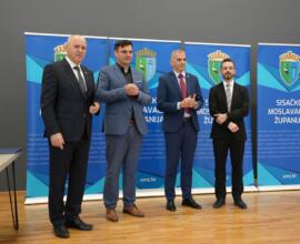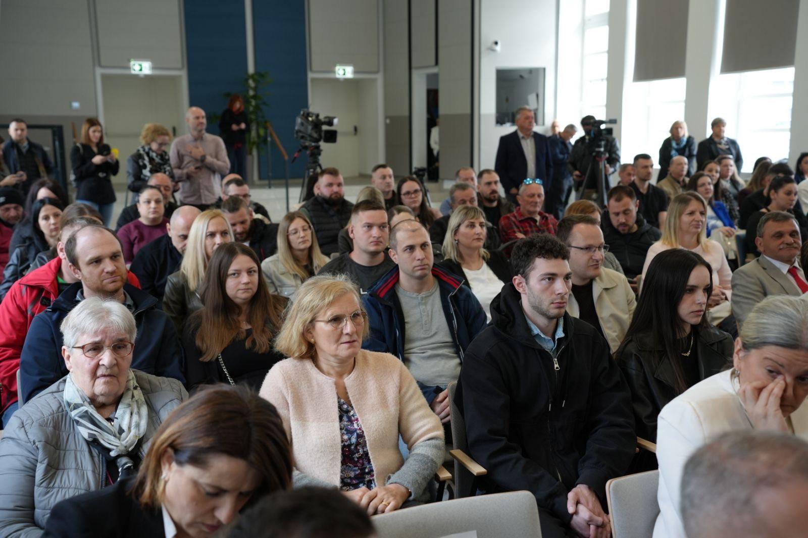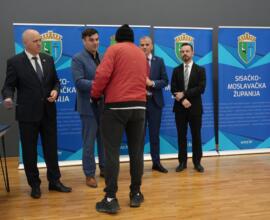 Nakon obilaska održana je svečana dodjela ključeva za 49 stanova korisnicima stambenog zbrinjavanja te 12 stanova namijenjenih osobama deficitarnih zanimanja na području Sisačko-moslavačke županije.