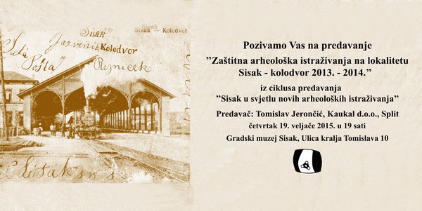 U četvrtak 19. veljače 2015. s početkom u 19 sati, održat će se treće u nizu predavanja u sklopu ciklusa „Sisak u svjetlu novih arheoloških istraživanja“. Predavanje pod nazivom „Zaštitna arheološka istraživanja na lokalitetu Sisak – kolodvor 2013–2014.” održat će Tomislav Jerončić koji će javnost upoznati s rezultatima istražnih radova provedenih na Željezničkom kolodvoru Sisak. Naime, nakon što je pokrenut postupak rekonstrukcije kolosijeka, perona i nadstrešnica te građenja pothodnika, ukazala se potreba za zaštitnim arheološkim istraživanjem, ponajprije zbog činjenice da se radi o prostoru koji se nalazi unutar gradskih bedema Siscije. Na lokalitetu su istraženi dijelovi sedam rimskih gradskih četvrti (insulae) objedinjenih u četiri veće antičke građevne cjeline. Predavanje će se održati u Gradskom muzeju Sisak (Ulica kralja Tomislava 10).