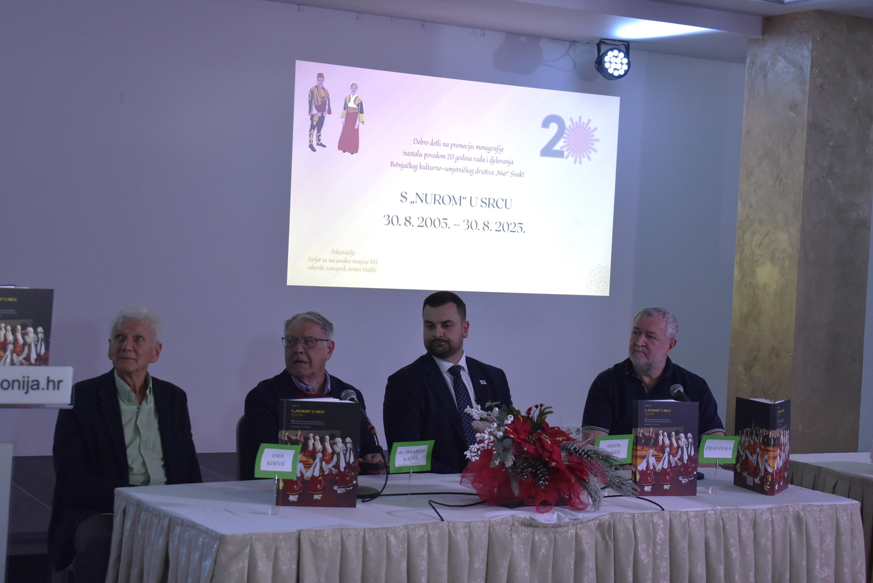 Bošnjačko kulturno-umjetničko društvo “Nur” Sisak s ponosom najavljuje predstavljanje monografije “S ‘Nurom’ u srcu”, iznimnog izdanja koje služi kao trajni trag i svjedočanstvo bogate povijesti društva.