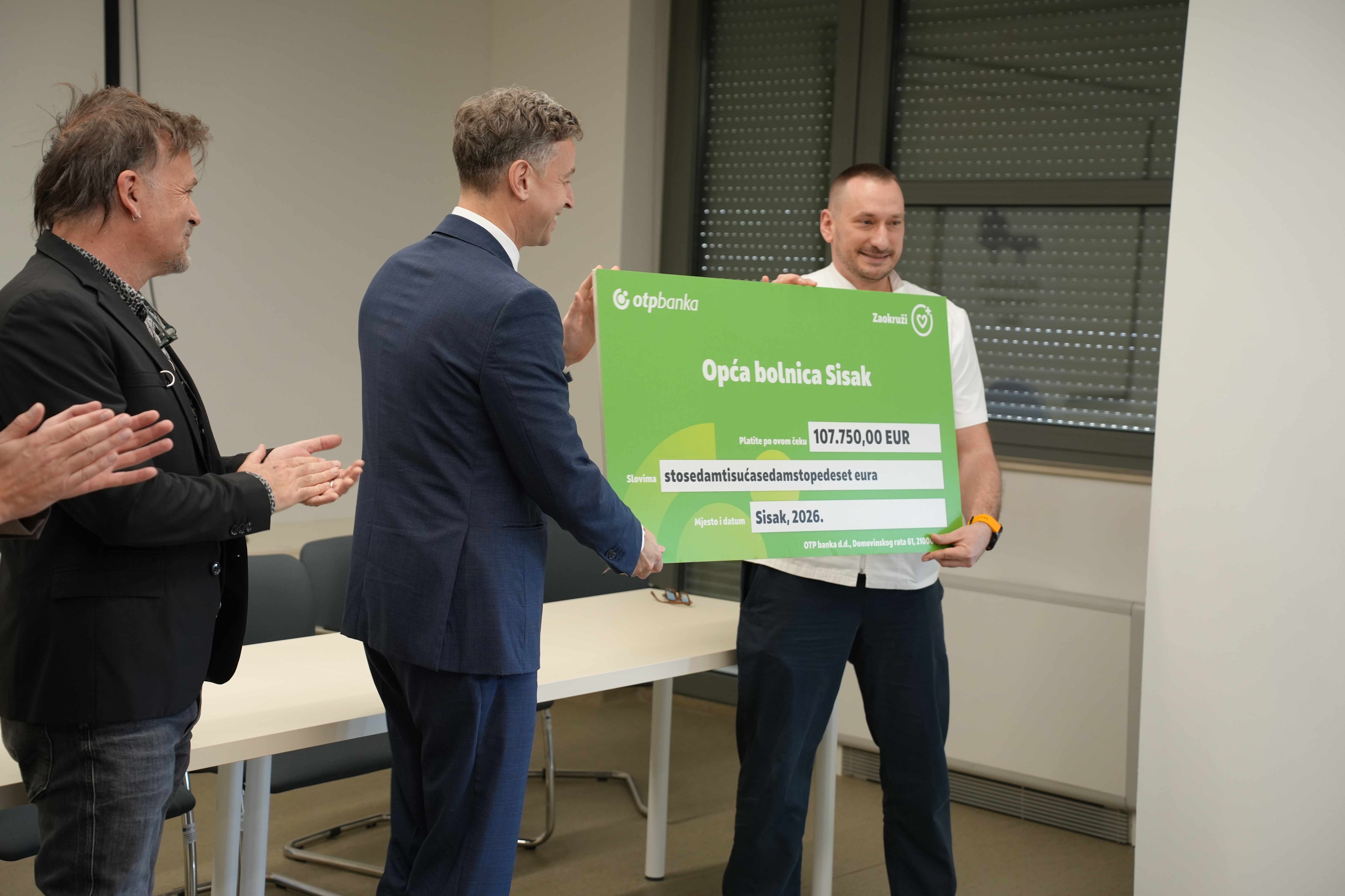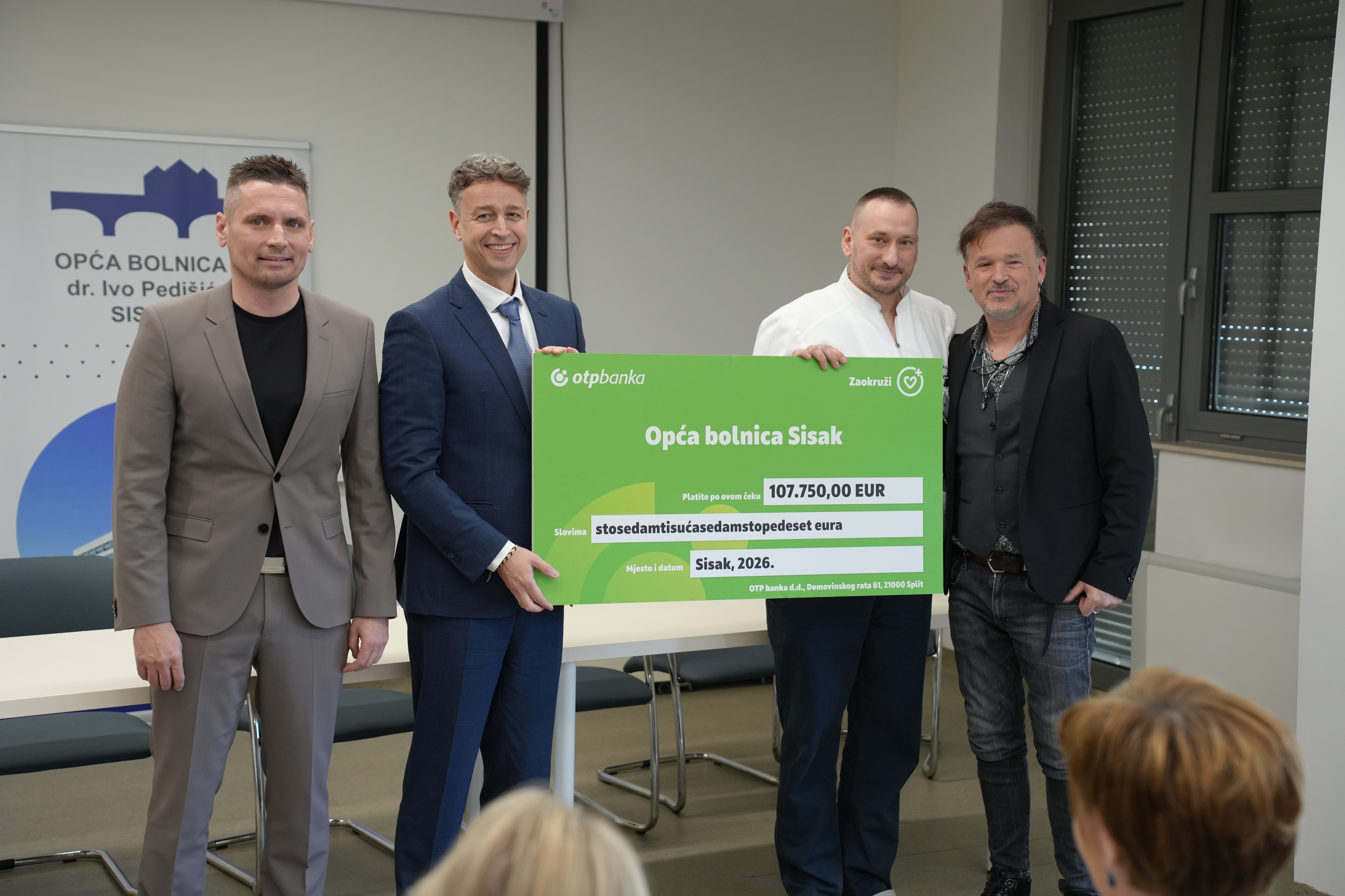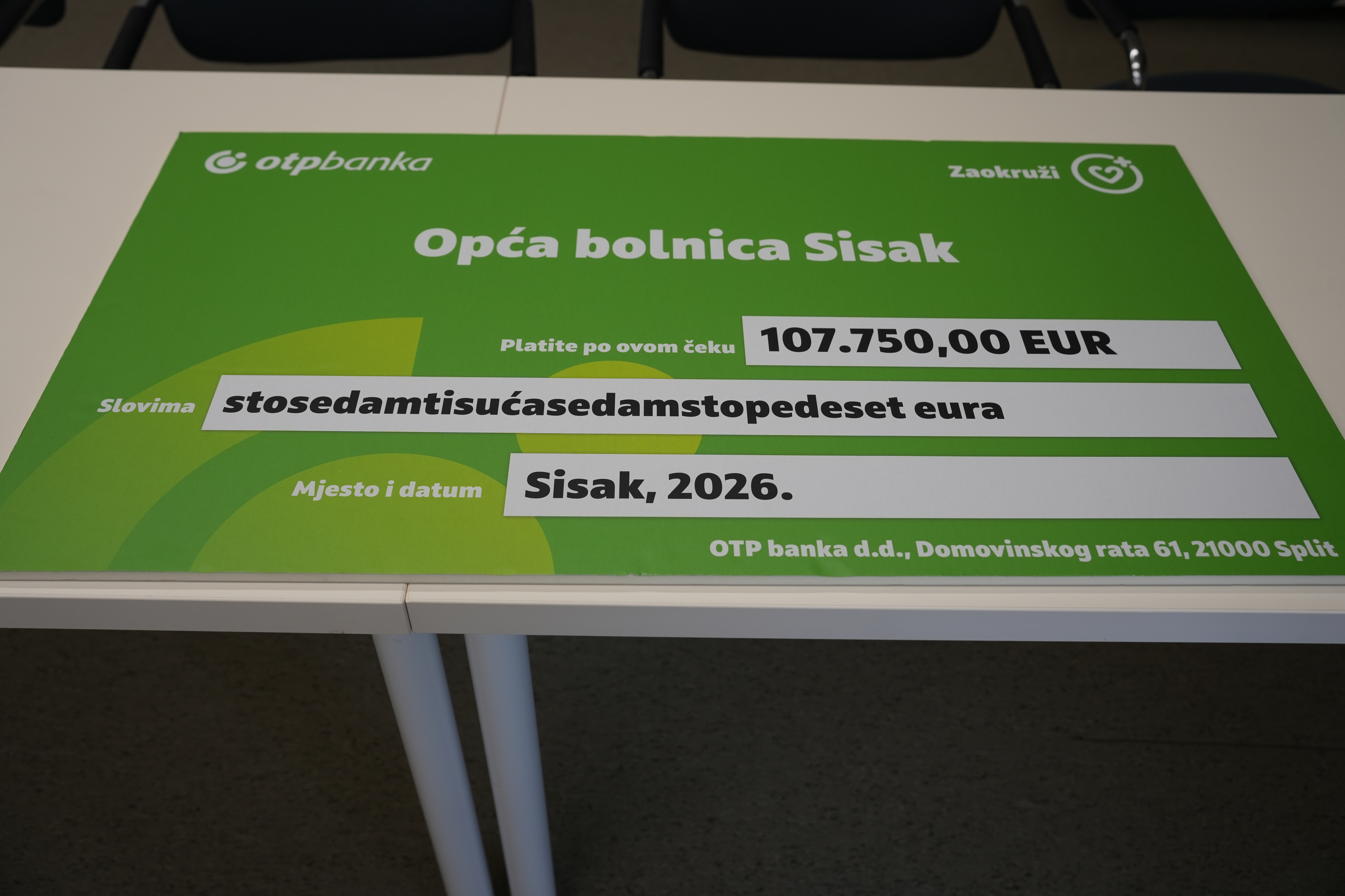 OTP banka d.d., u suradnji s Mastercardom, nastavlja svoj humanitarni program „Zaokruži“ kroz donaciju Općoj bolnici Dr. Ivo Pedišić Sisak u iznosu od 107.750 eura. Od ovog iznosa bolnica će nabaviti operacijski stol vrijedan 157.000 eura, a preostali iznos osigurali su dodatne donacije Ministarstva zdravstva i Grada Siska, čime je omogućena kupnja stola i poboljšanje uvjeta za sigurnije i učinkovitije operativne zahvate.